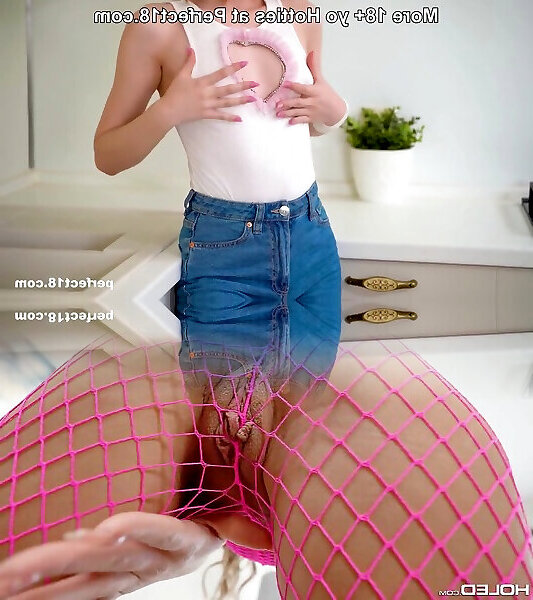 Killer black-haired doll Jasmine Caro does cleaning in kitchen with no clothes on 00:22