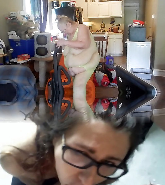 Grandmother with hefty udders cleaning the kitchen 07:54