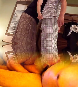 Mommy-in-law boinks her hairy pussy with her fingers and gets cum on her gorgeous ample ass at home