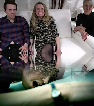German mature Housewife in nylons get MMF threesome and facial