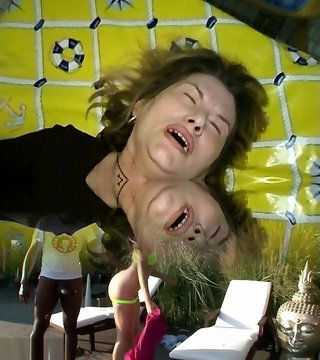 Four'8'' 142cm 9 Month Knocked Up Asian MILF getting rubbed all over with baby oil - Double cam view from below and in front